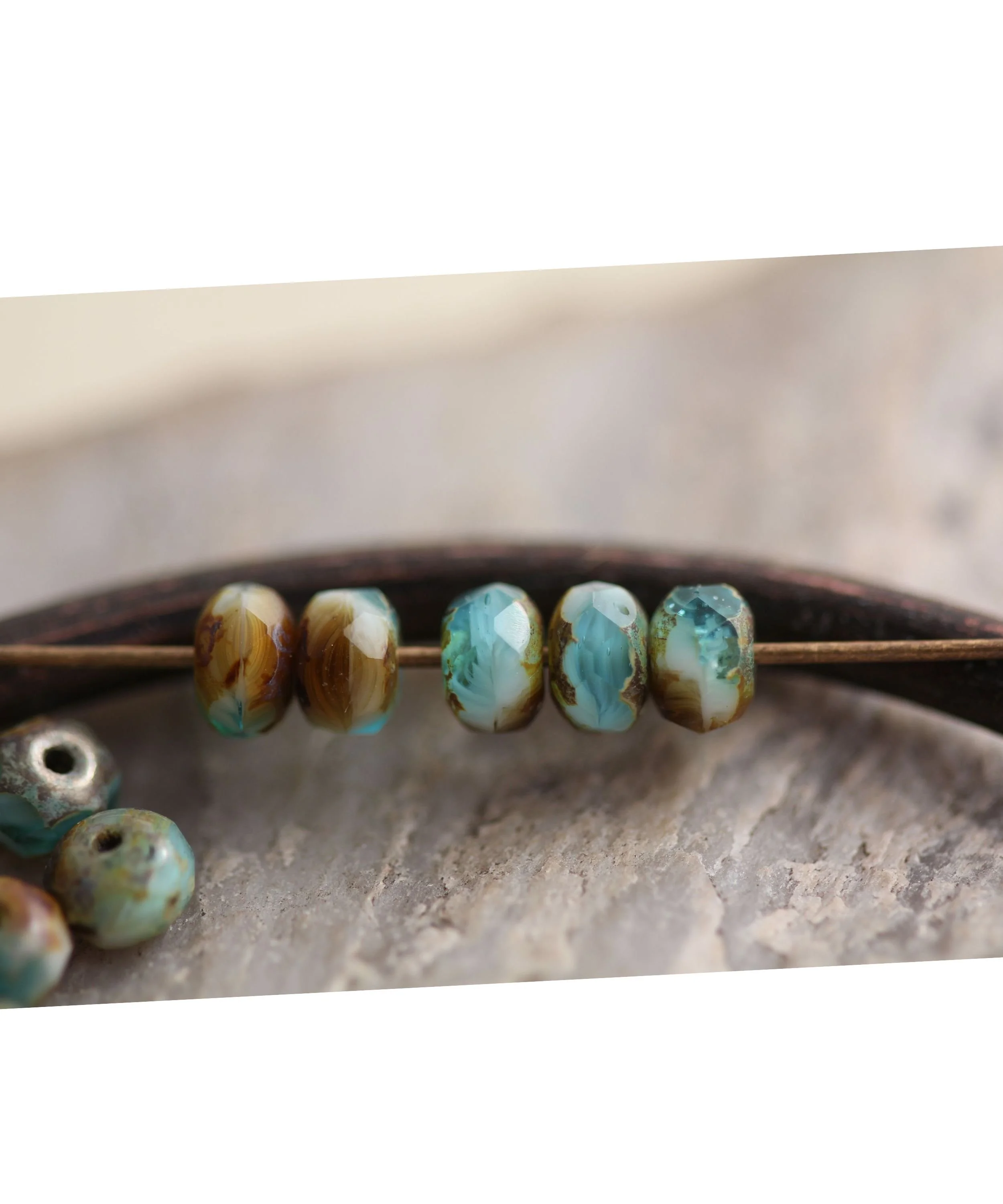 We stock unique and beautiful Czech glass beads, aged seed beads and rustic Greek metal charms for your handmade jewellery.
