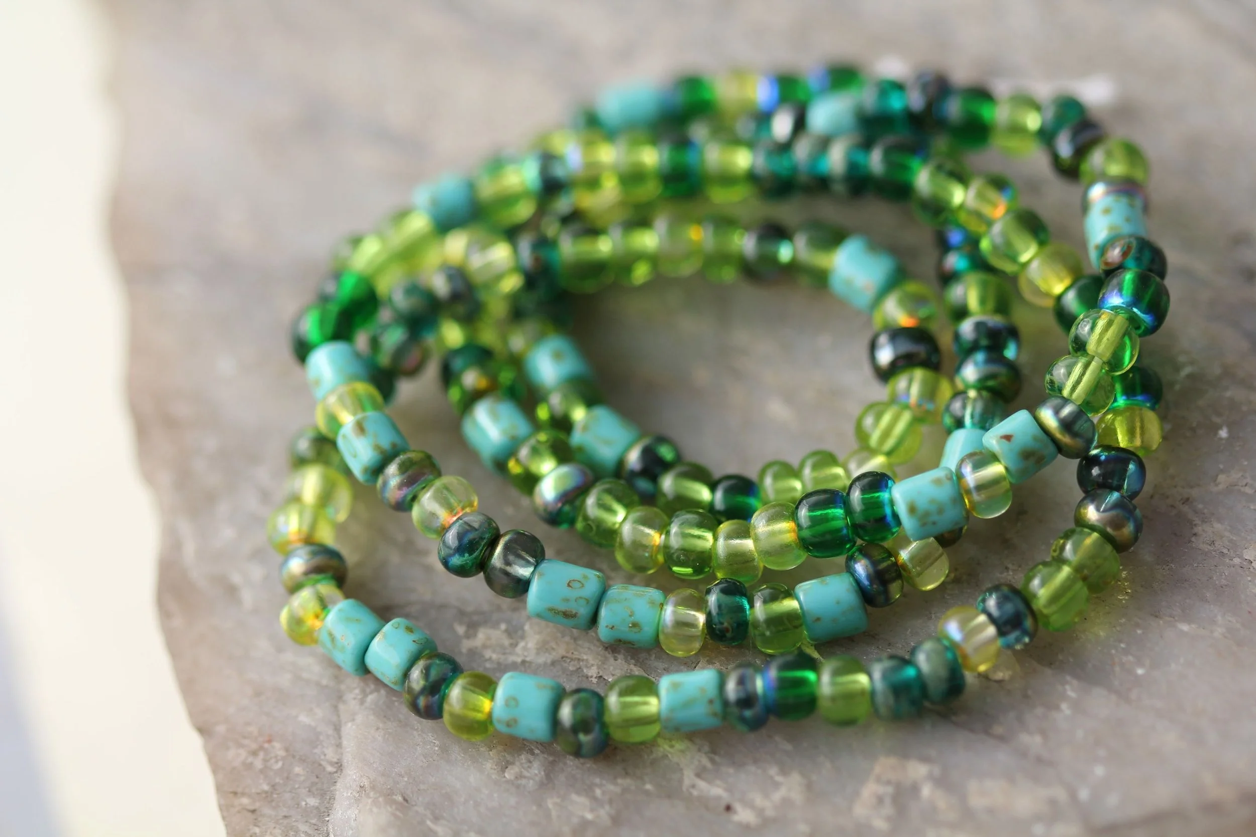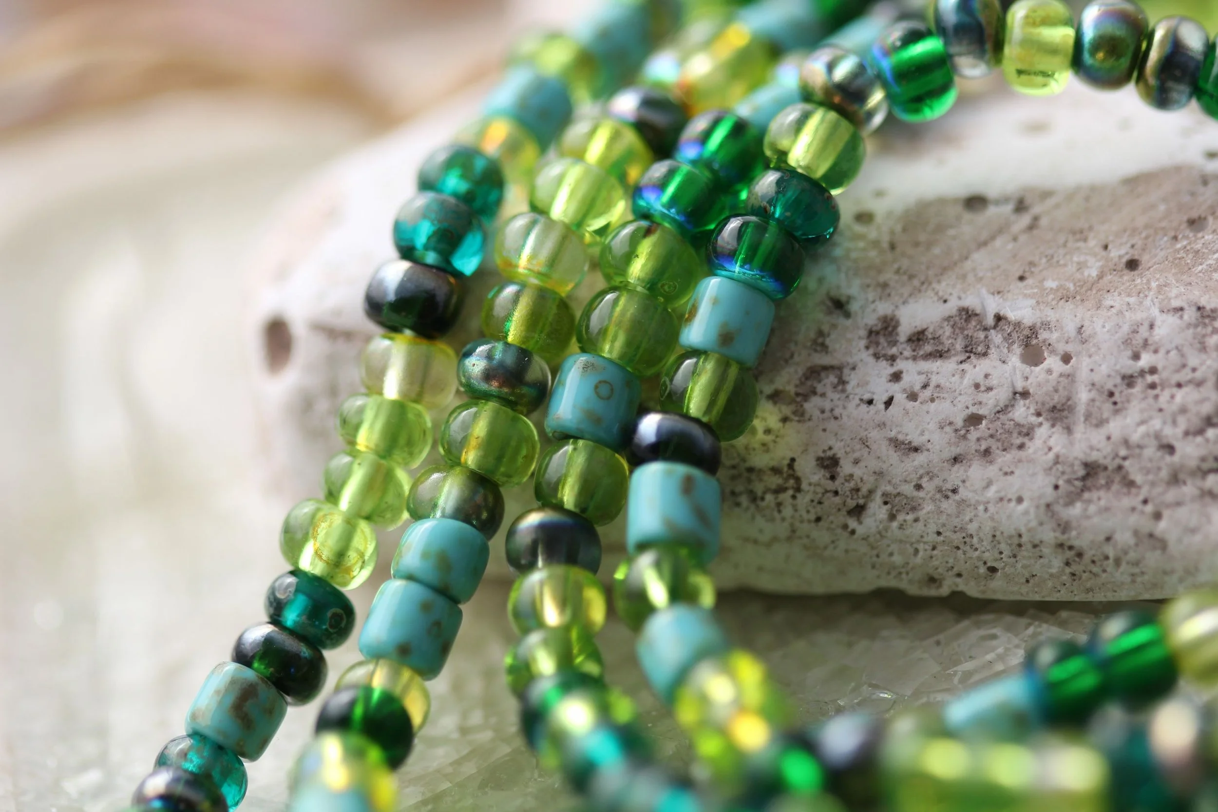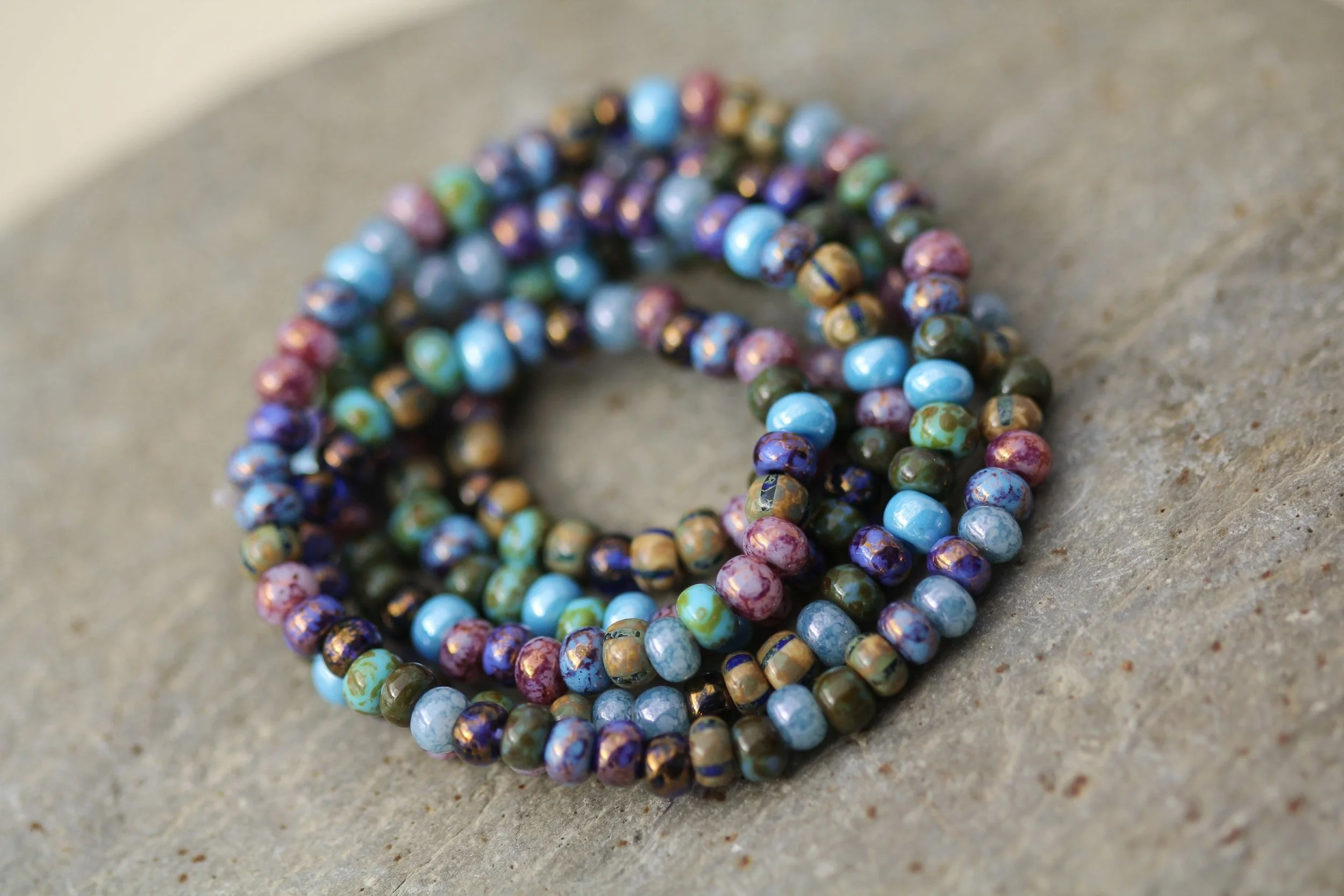 Pandanus 5/0 Aged Picasso Seed Beads Mix Czech Glass Beads 18" Strand