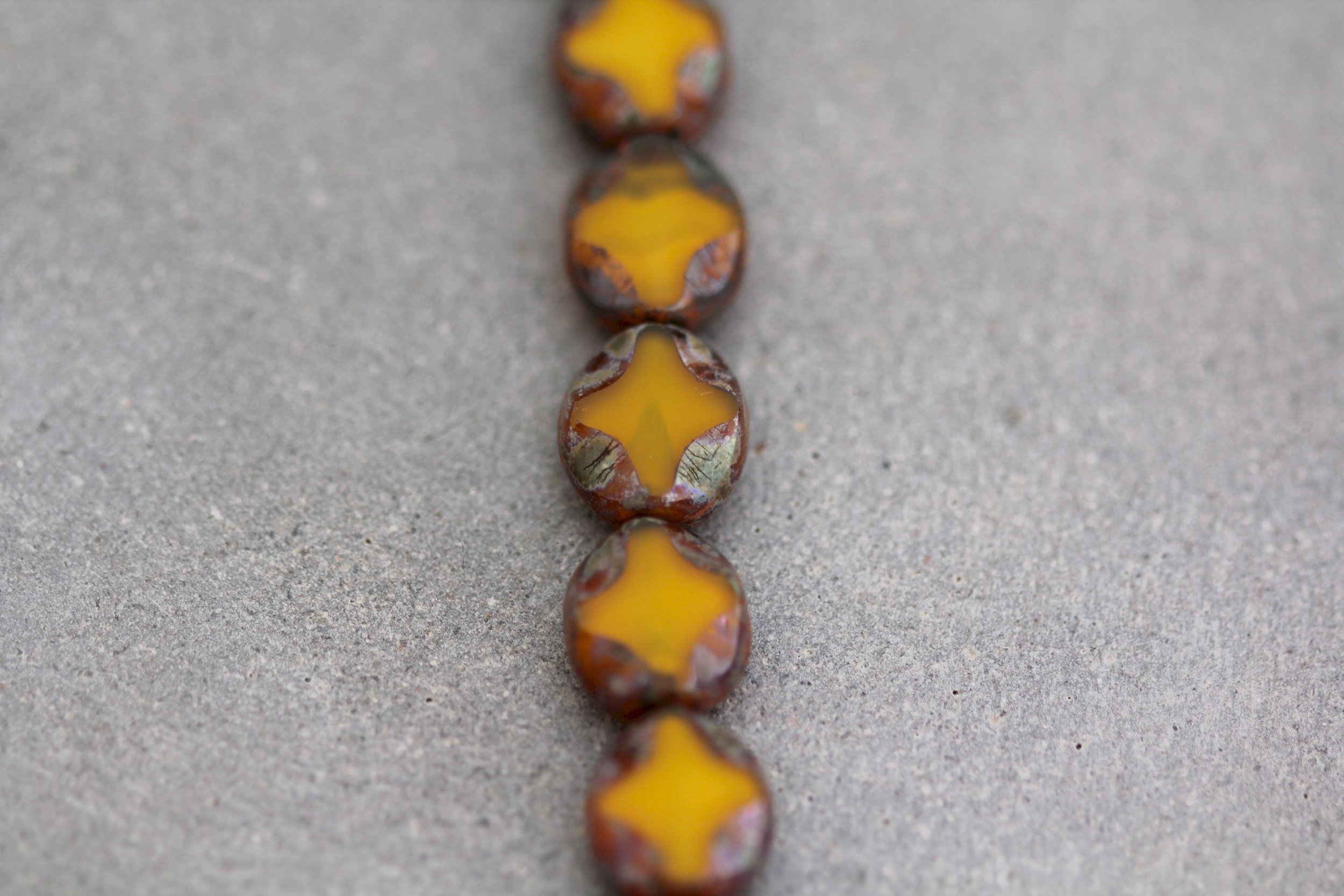 Yellow Topaz Egyptian Cartouche Czech Glass Beads 25x10mm, 4 Beads