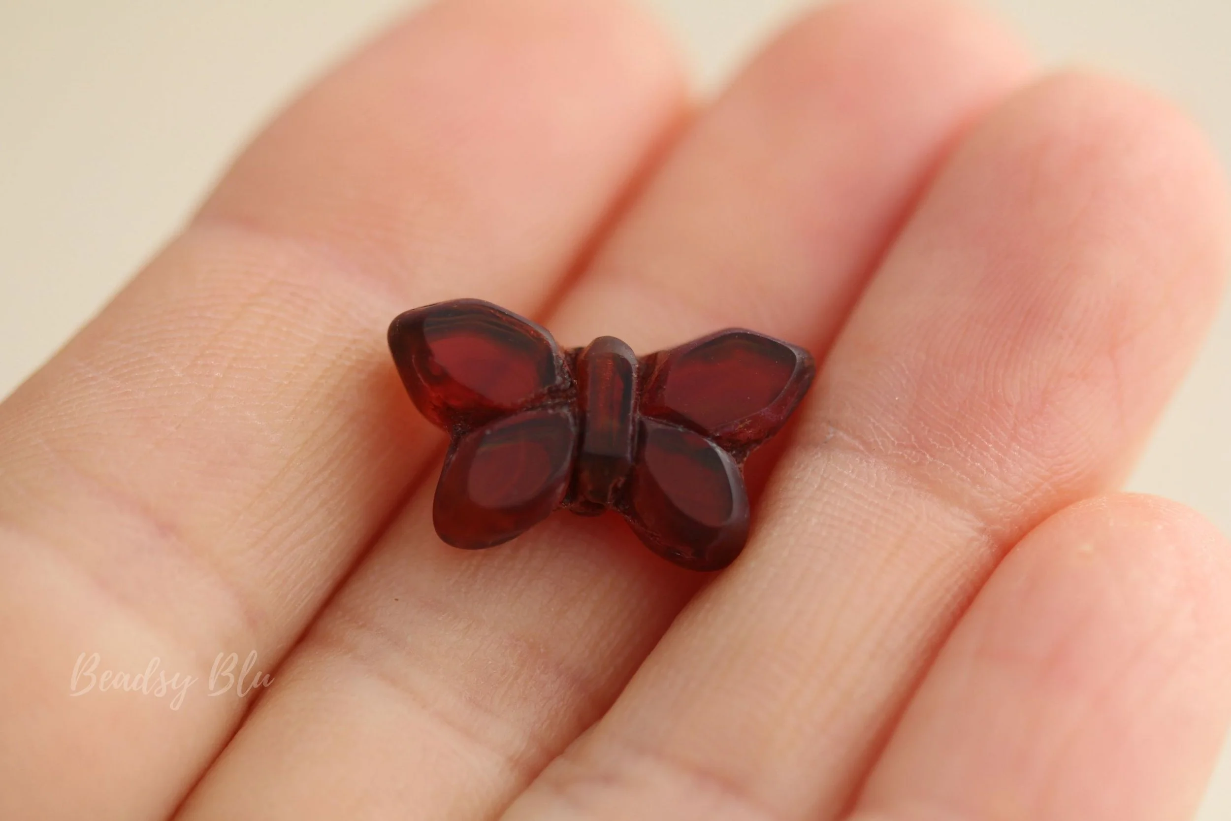 Beautiful Czech glass butterfly beads in port wine/Burnt umber with matte finish around the edge.