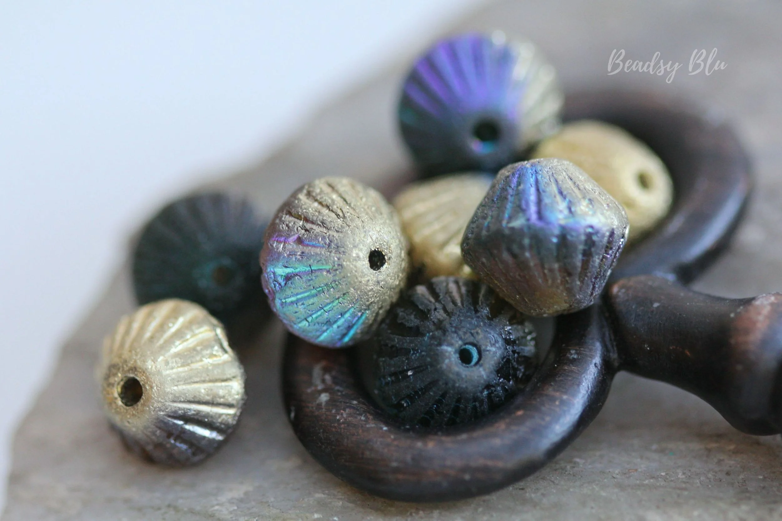 Golden Peacock African Bicone Czech Glass Beads 11x10mm, 10 Beads
